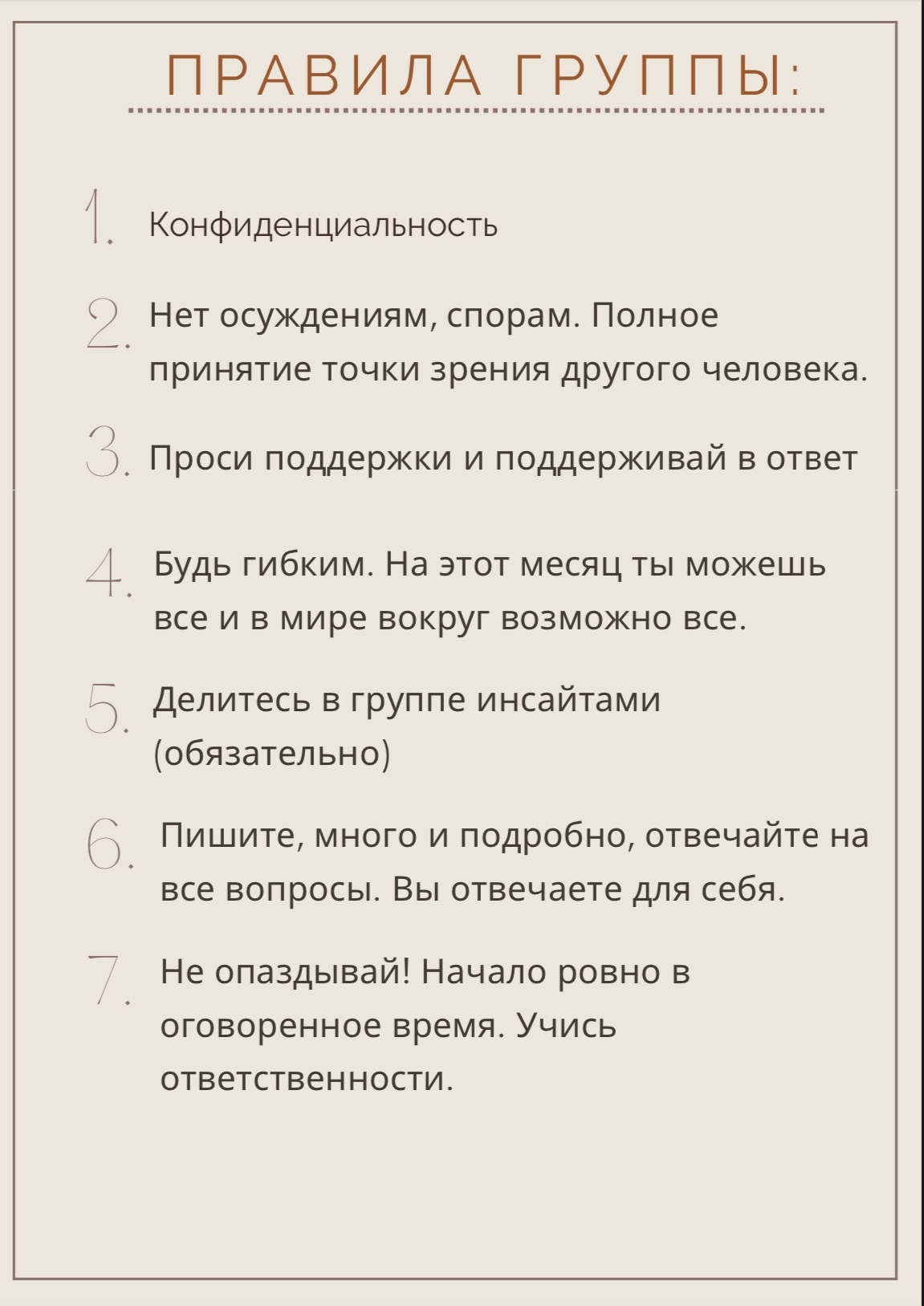 Аня спасибо большое за этот месяц в коучинговой группе, была очень рада быть частью такого формата. Твой опыт и виденье вещей, то как ты объясняешь и то как ты построила этот курс очень много тумана в голове разъясняют, приводят мысли в порядок, помогают расставить приоритеты на действительно важные вещи и побороть не служащие убеждения которые только тянут вниз. Мне нравится твой подход, на равных, ты делишься своим опытом и знаниями как лучшая подруга за чашкой кофе, и ты задаёшь вопросы в самое сердце, там где уже есть все ответы, только помогаешь их найти внутри самих себя. Быть частью нашей группы было отдельное удовольствие, где каждая девушка удивительная и классная личность, каждая делилась своим опытом и давала инсайт на своё виденье мира. За этот месяц я чувствую что я получила то за чем пришла, получила сцену выговорится, вернула себя себе, пинок начать делать, и классные знакомства с интересными людьми. С оплатой у меня с начала не получилось, и я подумала что это знак а может и не надо, может потом, но я рада что я все таки нашла как записаться и быть частью этого проекта и благодарна Себе за этот опыт!
